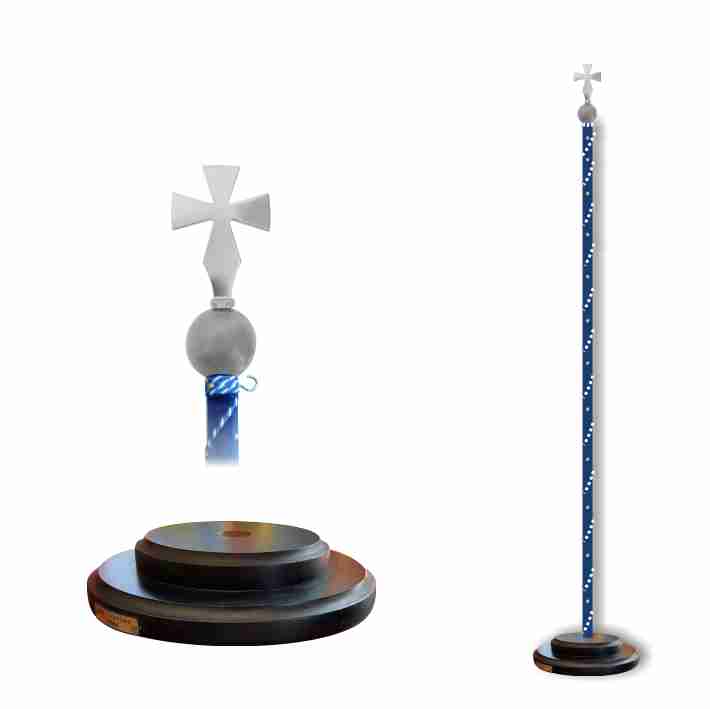 Wooden flag stand with velvet dressed pole and wooden gold spade or cross (bronze cross not included).