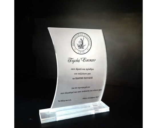 Transparent plexiglass award 18*12 cm, with 1 cm thickness.